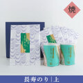 TOP長寿のり 長寿のり[上]ジャンボ缶・全形のり 詰め合わせ(焼きのり2本) 価格: ¥7,710 (税込) 販売期間: 数量: 個 在庫: 在庫あり 在庫 在庫あり 贈る方と贈られる方、そのどちら様にも喜ばれる「旨い海苔」、それが「長寿のり」です。 創業以来70数年、お客様に喜ばれる海苔を求め培ってきた目で厳選し、丹精込めて仕上げました。 そのこだわりが農林水産大臣賞受賞という評価に繋がりました。 長寿のりの味付けのりが2本入った商品です。 【内容量】 長寿のり 味…8切128枚入り×2缶 長寿のり上 焼…全形焼きのり10枚入り×5袋