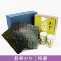 【内容量】 長寿のり特選 全形焼きのり10枚入り×5袋 煎茶八十八夜缶 100g×2缶
